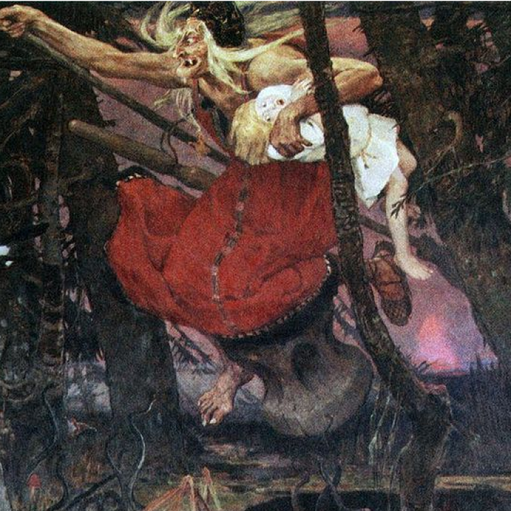 Turns out Baba Yaga is more popular in the arts than I realized! She’s an old witch in Slavic and Russian folk tales. I associate here with these motifs: * Fire * A house that runs on chicken legs * She eats maidens…